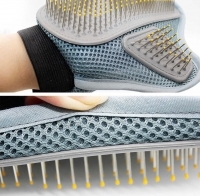 Mănușa are vârfuri din oțel inoxidabil care tratează delicat blana animalului tău de companie.